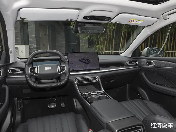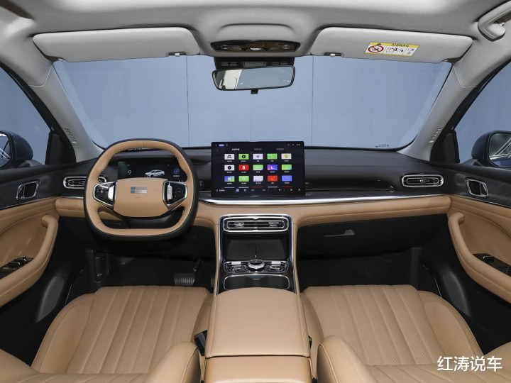 内饰方面,吉利银河星耀6提供澄湖映雪白、苏堤暖棕、烟雨墨黛三款内饰风格,中控台布局简洁,两侧空调出风口应用了“回”字元素,车内经常碰触的地方都是软性材质覆盖和皮质包裹,采用电子怀挡机构,配备上下平底样式的双辐多功能方向盘、10.2英寸液晶仪表、14.6英寸悬浮式中控屏,搭载全新银河Flyme Auto智能座舱系统。
